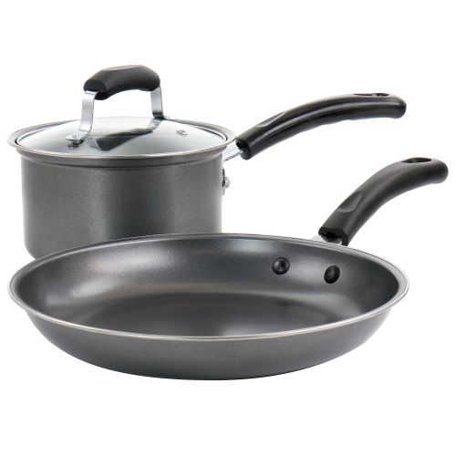 The Gibson Everyday Highberry 3 Piece Nonstick Carbon Steel Cookware Set in Grey suits chefs of all skill ranges. It's nonstick interior provides easy food release and fast cleaning afterwards. The bakelight knob and handles stay cool to the touch through out the entire cooking process. For long lasting care and quality, hand wash every piece. Stir fry veggies, sear chicken, boil broths and stun the evening with a fantastic meal!